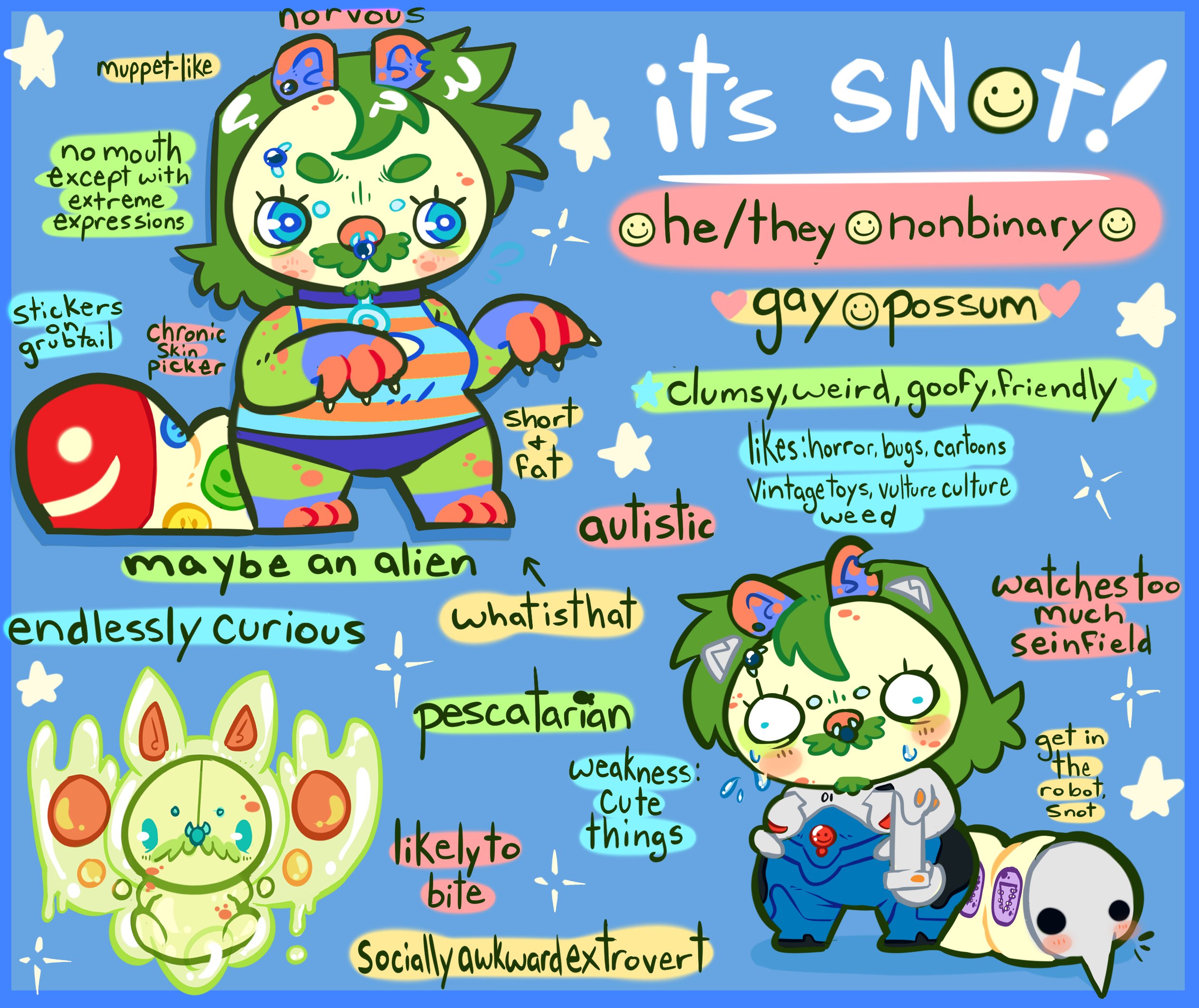 My fursonas name is Snot! His ref is located in the paintbrush icon to the side.